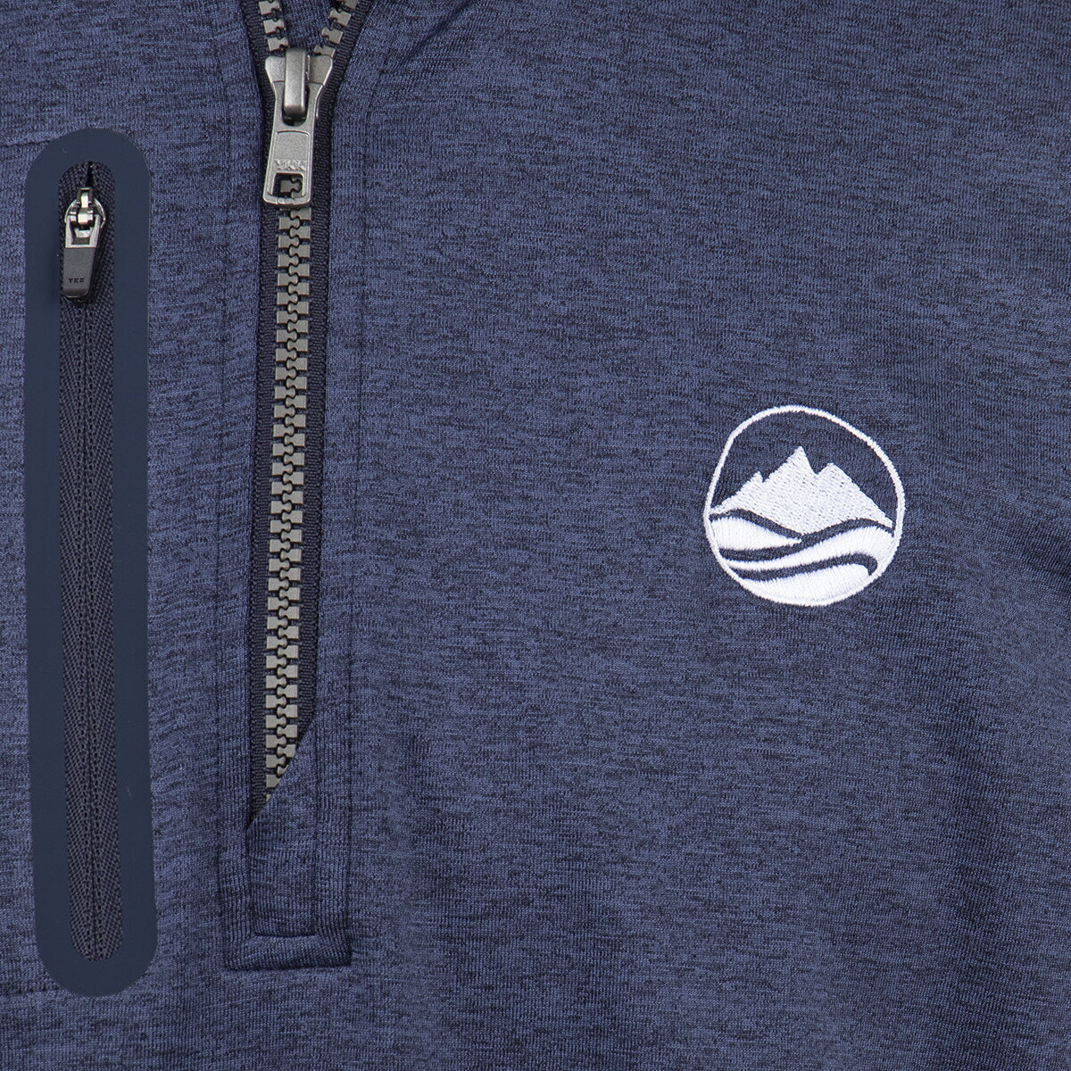 89% polyester, 11% spandex heather jersey knit. UPF 50+. UV sun protection. CB logo zipper pull. Moisture-wicking fabric. Silver CB pennant heat transfer at back half moon. Imported. Machine wash.